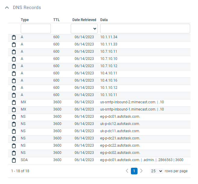The type of DNS record. Autotask will retrieve the following DNS record types: