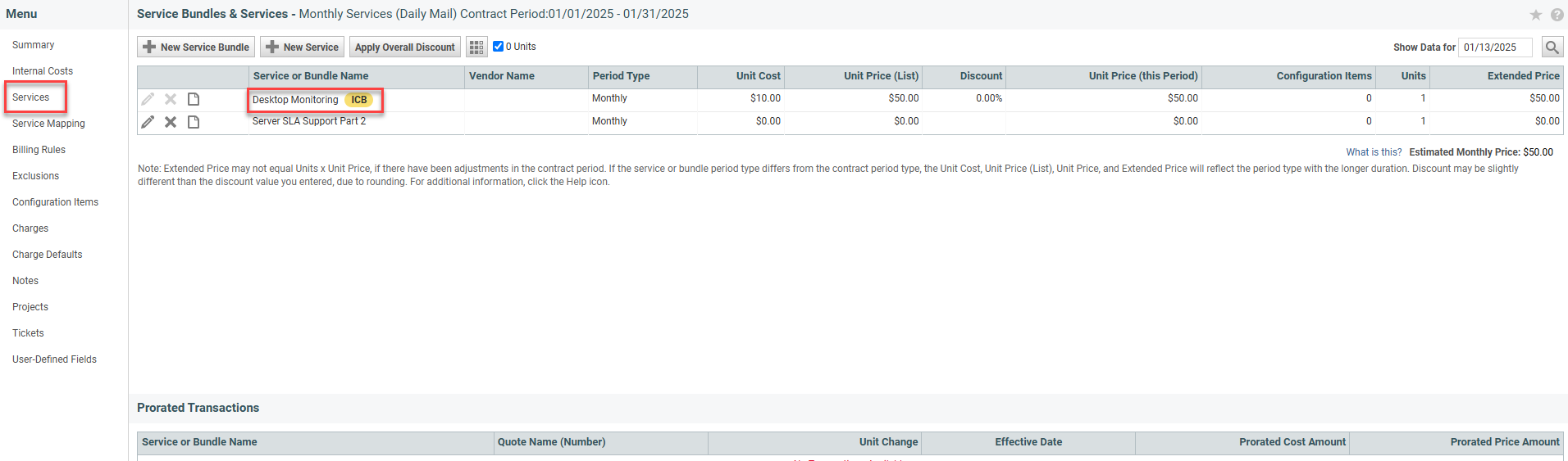 IMPORTANT If a prorated billing period is created for a service and then mapped to Integrated Customer Billing Types, it will cause additional units to appear and any prorated unit counts will not be removed until the next billing period.