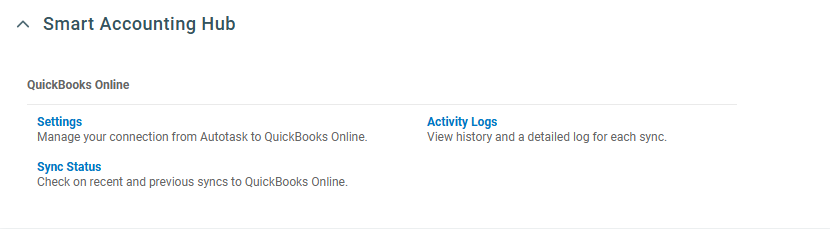 Pausing the automatic sync between Autotask and QuickBooks Online helps preserve your existing integration settings while you set up the new Smart Accounting Hub. This makes it easy to switch back to your current setup at any time, if needed.