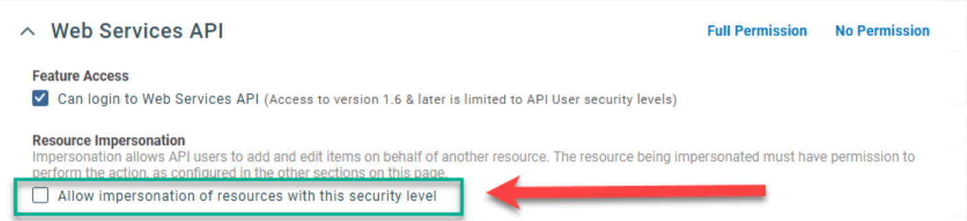 NOTE System security levels that restrict API resource impersonation may result in errors due to conflicts with the OAuth authentication flow.