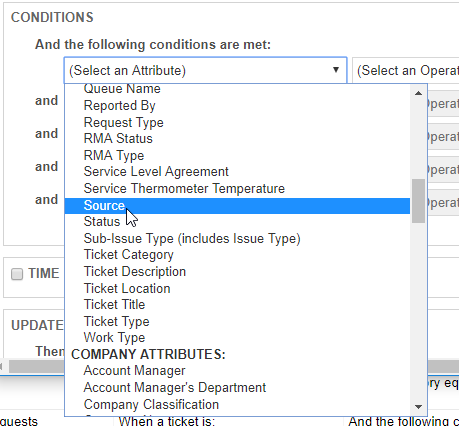 - Workflow rules: You can use workflow rules. In addition to the work type, you can select from a long list of ticket, organization, contact, device, and contract attributes to define the conditions when the default contract should not be applied.