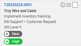 We've added the ability to configure the layout of cards on boards. Each card represents one ticket. The card layout determines which fields appear on the card and in what order. You can create up to 10 different card layouts in your database. The Ticket Number and Description fields will always appear on the card. You can select up to five additional fields from the following list: Company Name, Completed By, Created By, Issue Type, Queue, Sub-Issue (includes issue), Ticket Category, Ticket Title, Ticket Type, Work Type, and any string, number, or date user-defined fields. Separately, you can also chose to have badges for the Status and Priority fields appear on the card.