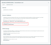 - Click on Authentication Details. There you will see a new Domain Validation TXT requirement that consists of a unique ID.